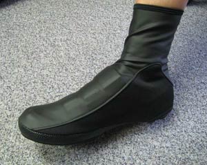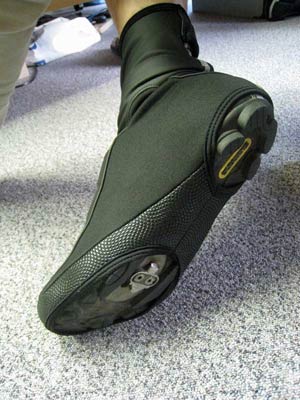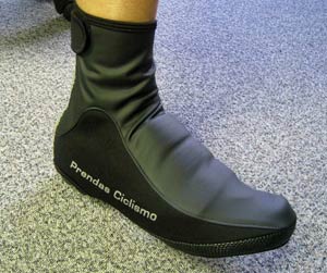 Fresh off the sewing machine at Prendas Ciclismo, the latest of the Dorset-based clothing specialist’s various overshoe designs is a beaut, featuring as it does a water-resistant front/upper panel with slightly stretchy, breathable side panels and a lower edging panel in a sturdy rubber-embossed fabric.