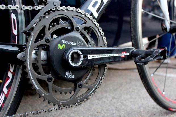 Dowsett’s Sky machine was equipped with Shimano Dura-Ace Di2, while Movistar are one of five Campagnolo-sponsored WorldTour teams (with Astana, Lotto-Belisol, Ag2r La Mondiale, SaxoBank-Tinkoff and Vacansoleil-DCM), with the Brit’s new steed dressed in the Italian component manufacturer’s electronic Record EPS groupset.