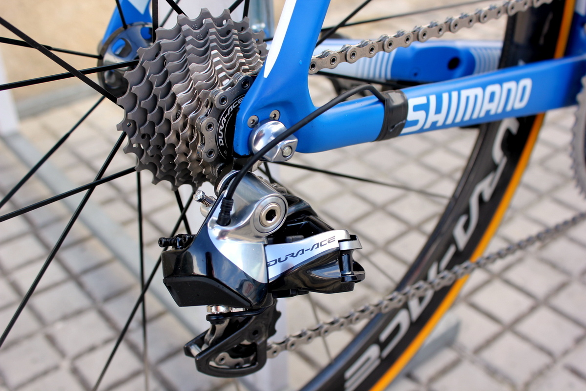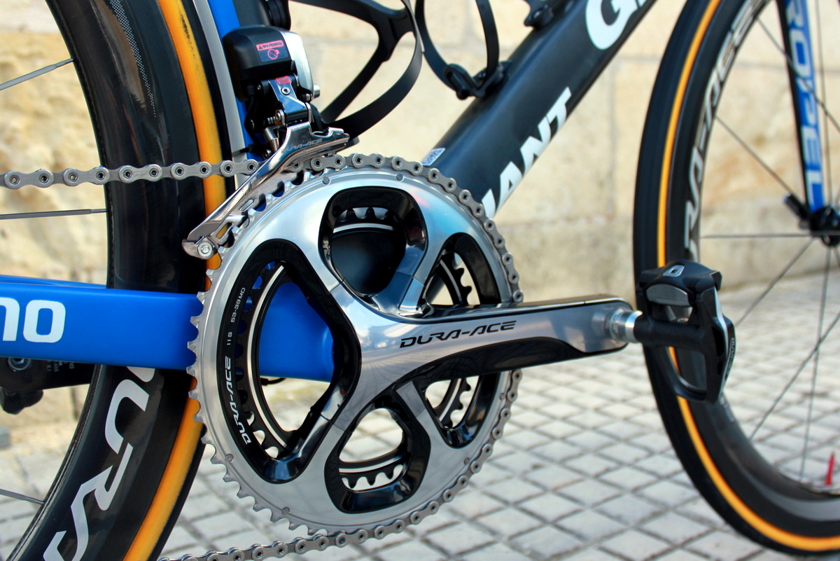 The latest Dura-Ace chainset has a new four-arm design, which Shimano say is lighter but just as stiff as the old five-arm design. The front and rear mech have also been overhauled and are now much sleeker than the original Dura-Ace Di2 mechs
