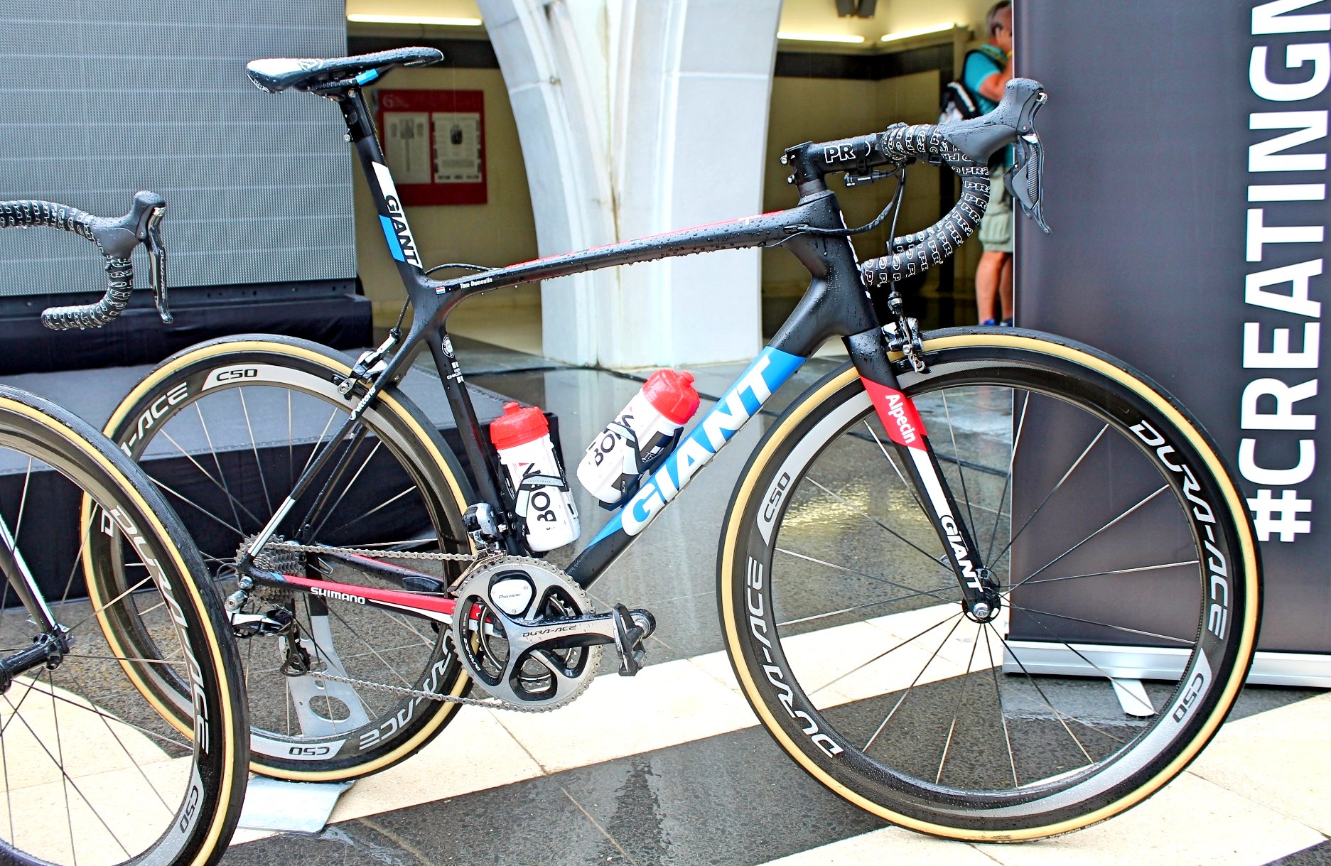 Giant revamped the TCR, which was first introduced in 1997, last year and the updated chassis is the lightest frame they’ve ever produced, while also claiming it has the highest stiffness-to-weight ratio on the market. It certainly did Dumoulin no harm in the mountains and the frame also seeks to balance aerodynamics and comfort.