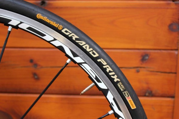Van den Broeck’s bike was dressed in its training camp outfit for my visit, rather than its Sunday best, with Campagnolo Eurus aluminium clincher wheels and Continent Grand Prix 24mm tyres.