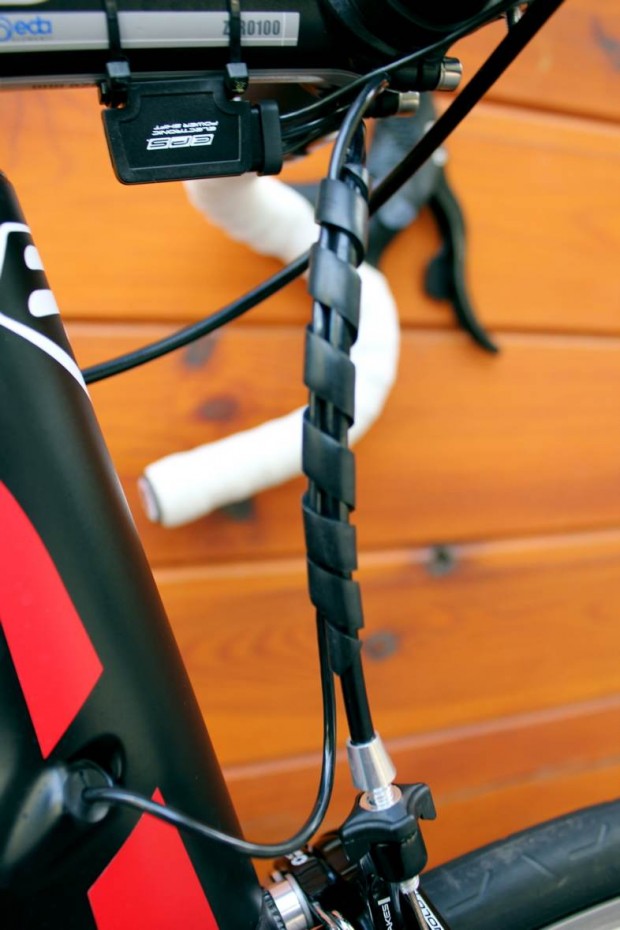 Cable routing is internal on the Helium SL and is compatible with both electronic and mechanical groupsets. Check out the homemade solution here to keep the brake and gear cables neat and tidy.