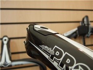 The handlebar centre bulge is ribbed internally for stiffness, which said to be increased by 9percent over the Pro Vibe 7S bar. Unidirectional carbon-fibre construction doubles stem rigidity compared to the Vibe 7S stem.