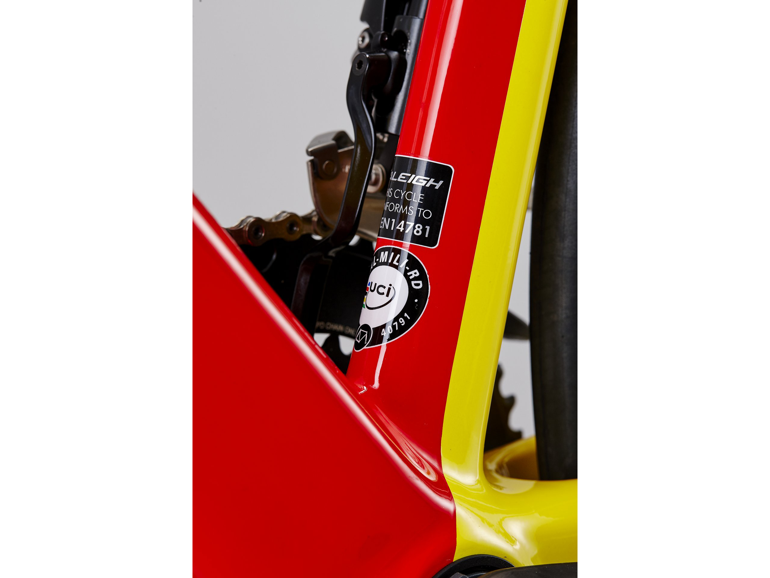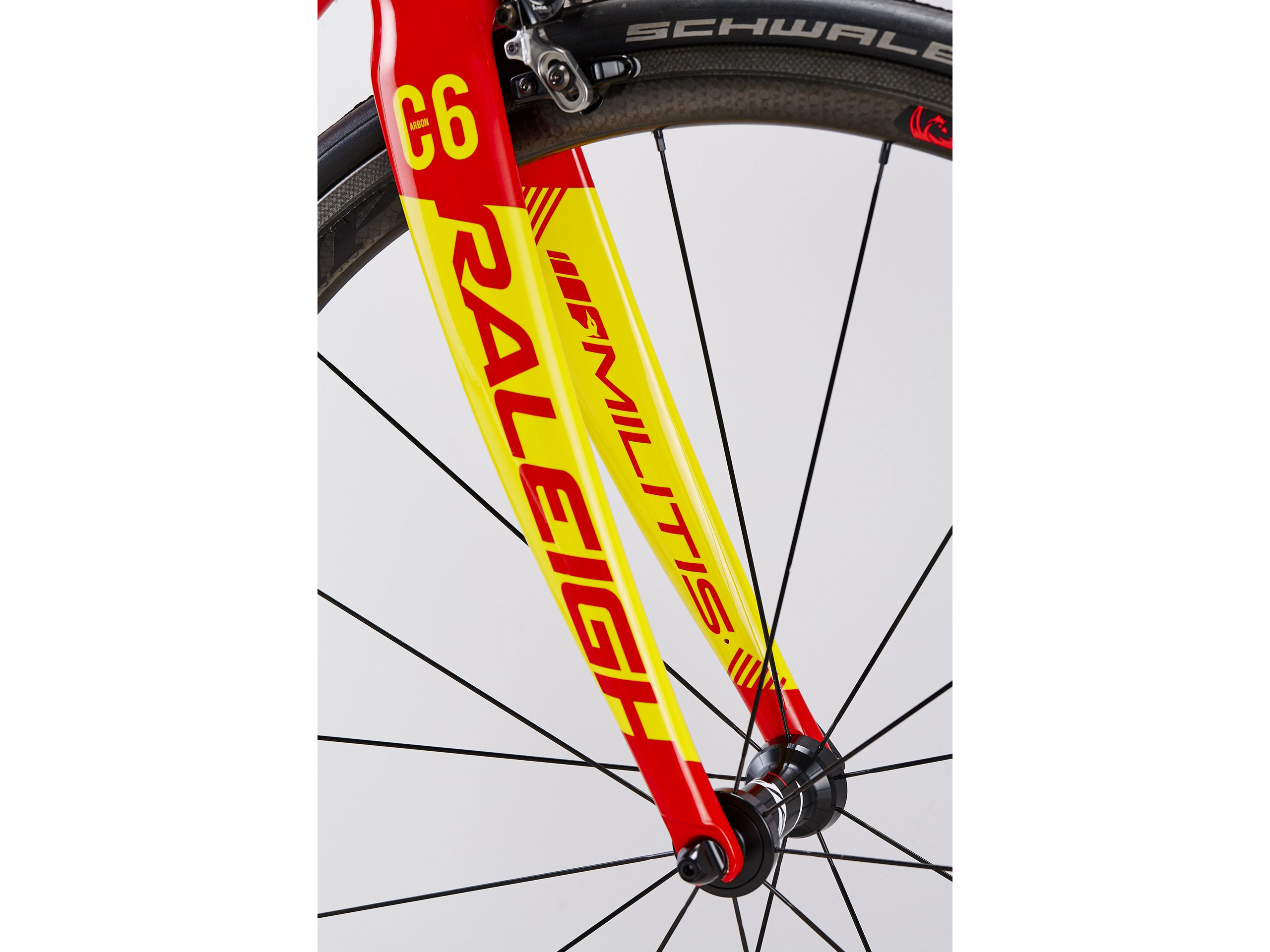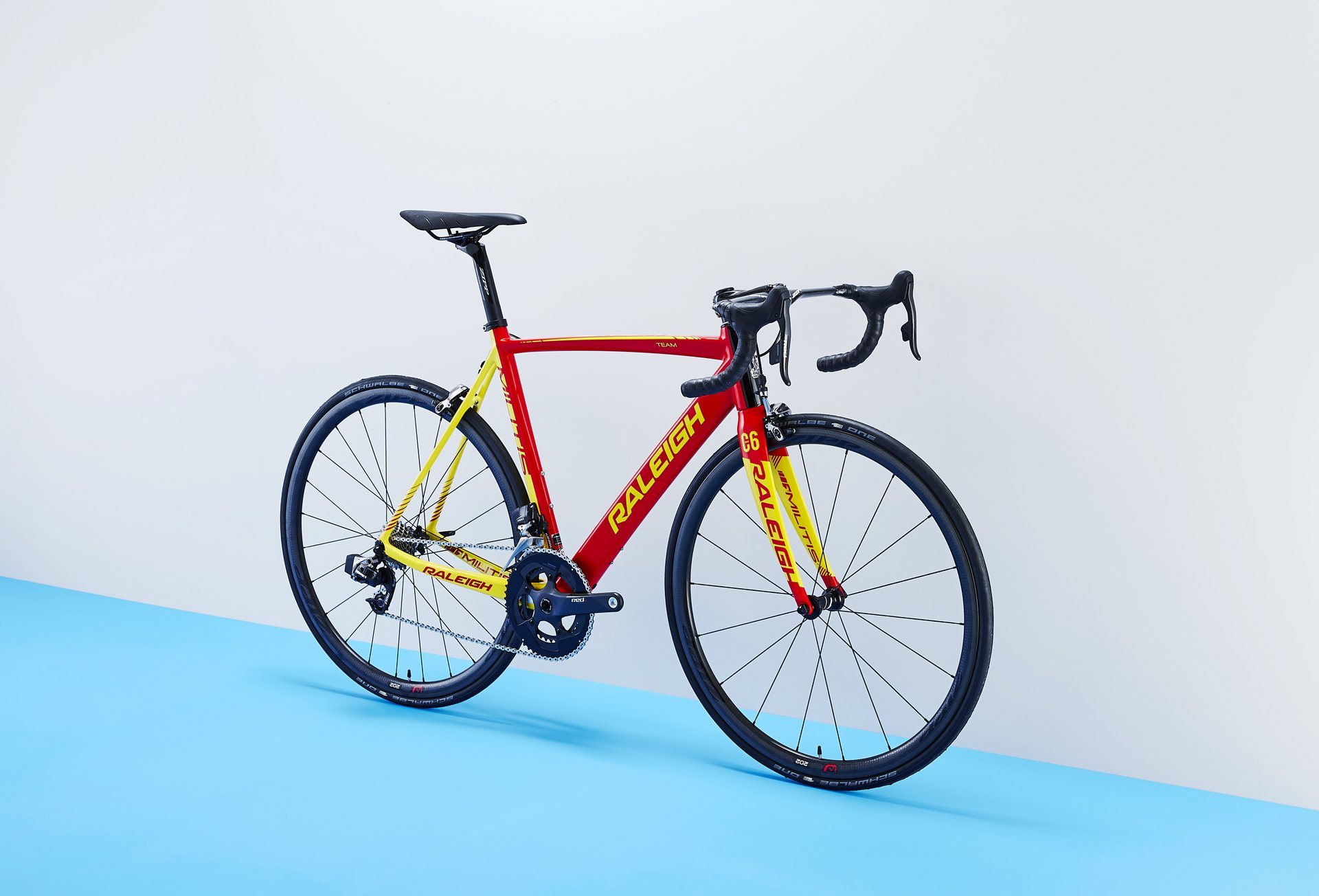 Why is that relevant? Well a quick glance at the new Raleigh Militis Team bike shows that the iconic colour-way has made its way into the manufacturing side, creating the eye-catching beauty we see here.