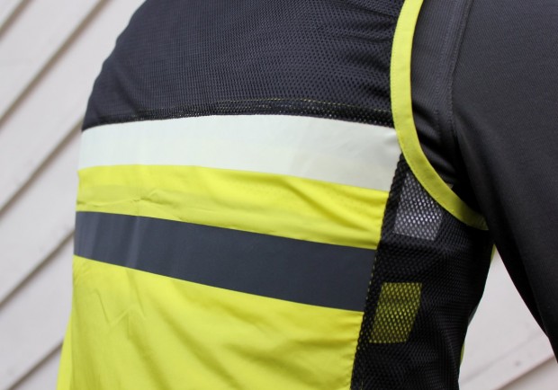 The fabric isn’t windproof but that’s where the gilet comes in. It’s super-light, made from 100 per cent polyester and easily packs down to be stowed in one of the Brevet’s many pocket (more on which below). It’s a featherweight gilet – with large mesh sections at the back to ensure there’s plenty of ventilation to allow heat to escape – and so isn’t the warmest we’ve tried but it takes the edge off the wind, which works just fine in the current temperatures (roughly between seven and 12 degrees), though you’ll likely want something more heavy duty for colder conditions.