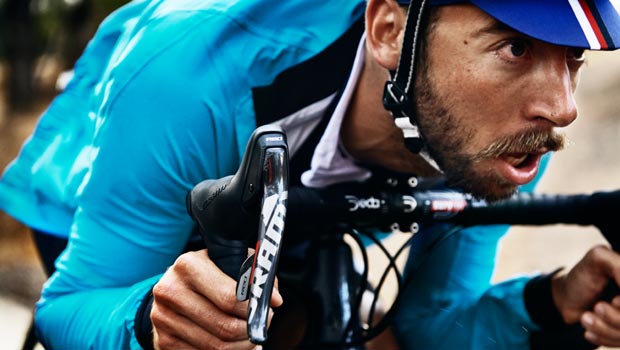 The cape has a slim fit, reflecting its place in the Pro Team range, but Rapha say the fabric has enough stretch to ensure it keeps its shape when worn over a jersey with heavily loaded pockets. Details include lycra cuffs, a neoprene collar and reflective trim and logos, while the cape can also be packed down into a jersey pocket. The Pro Team Race Cape will come in Team Sky-inspired blue or charcoal grey and will cost £220 when it becomes available in late March.
