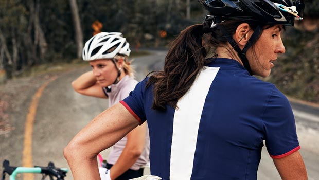Rapha’s women’s spring/summer range has also been revamped, with the new Souplesse Jersey (£125) offering a female-specific fit (including shorter sleeves) made from a lightweight supportive material in a flattering cut. Out back there are two rear pockets and an additional pump pocket, along with a zipped valuables pocket. Details include a contrast stripe and a polka dot collar lining, while the jersey is available in mauve, dark blue or light blue.