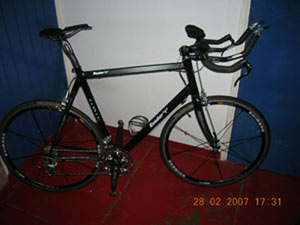 What I think is unique about my bike, is that apart from the chain, bar end tape and brake cables, every thing has been purchased off eBay, some of it 2nd hand (frame, wheels, brakes) and some bits have come from eBay shops in America, as the good exchange rate has helped (the Truvativ Rouleur carbon triple cost me approx £100 with postage).