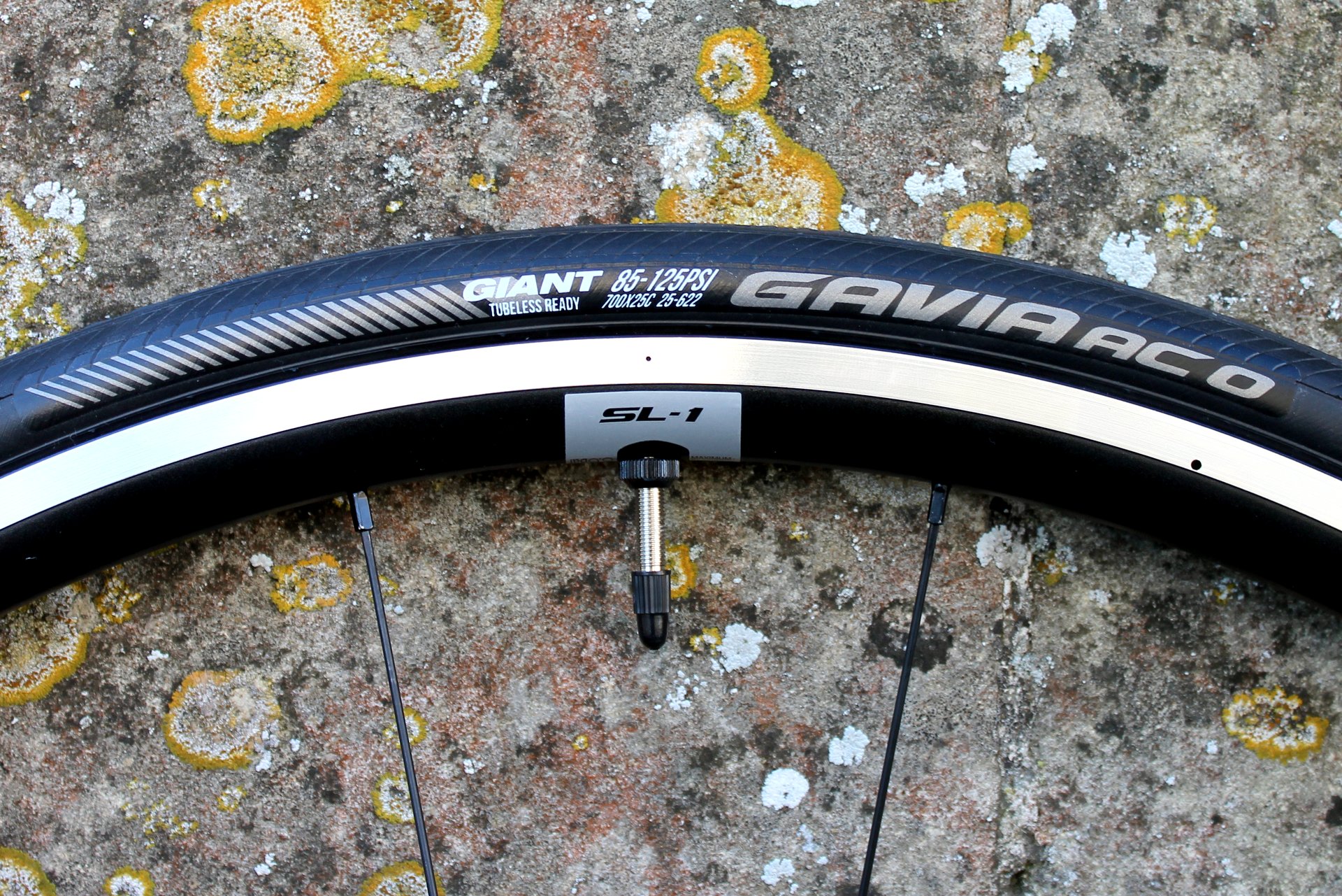 The SL1 Climbing Wheelsystem is tubeless-ready and our wheels came with Giant’s Gavia AC0 tyres pre-installed (they otherwise cost an additional £49.99 each)