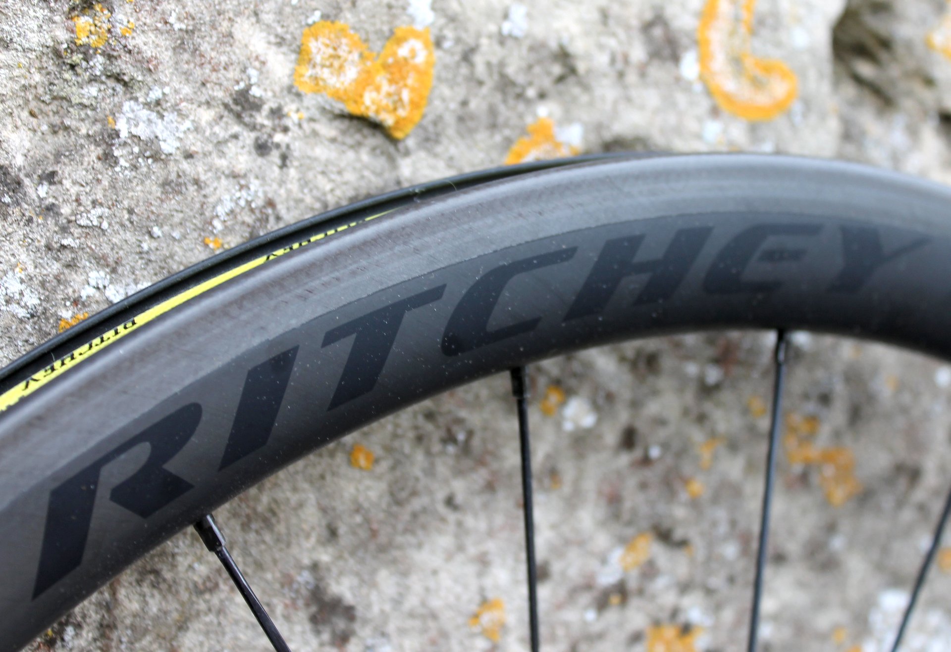 Hidden under the tubeless rim tape are straight-pull DT Swiss New Aero spokes in a 20/24 layout, which are light as well as bladed to cut through the air, and they attach to Ritchey’s own WCS hubs.