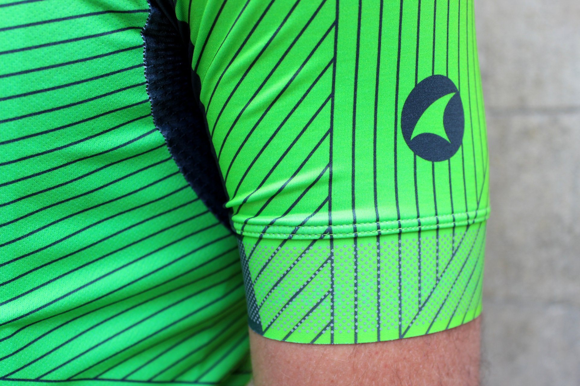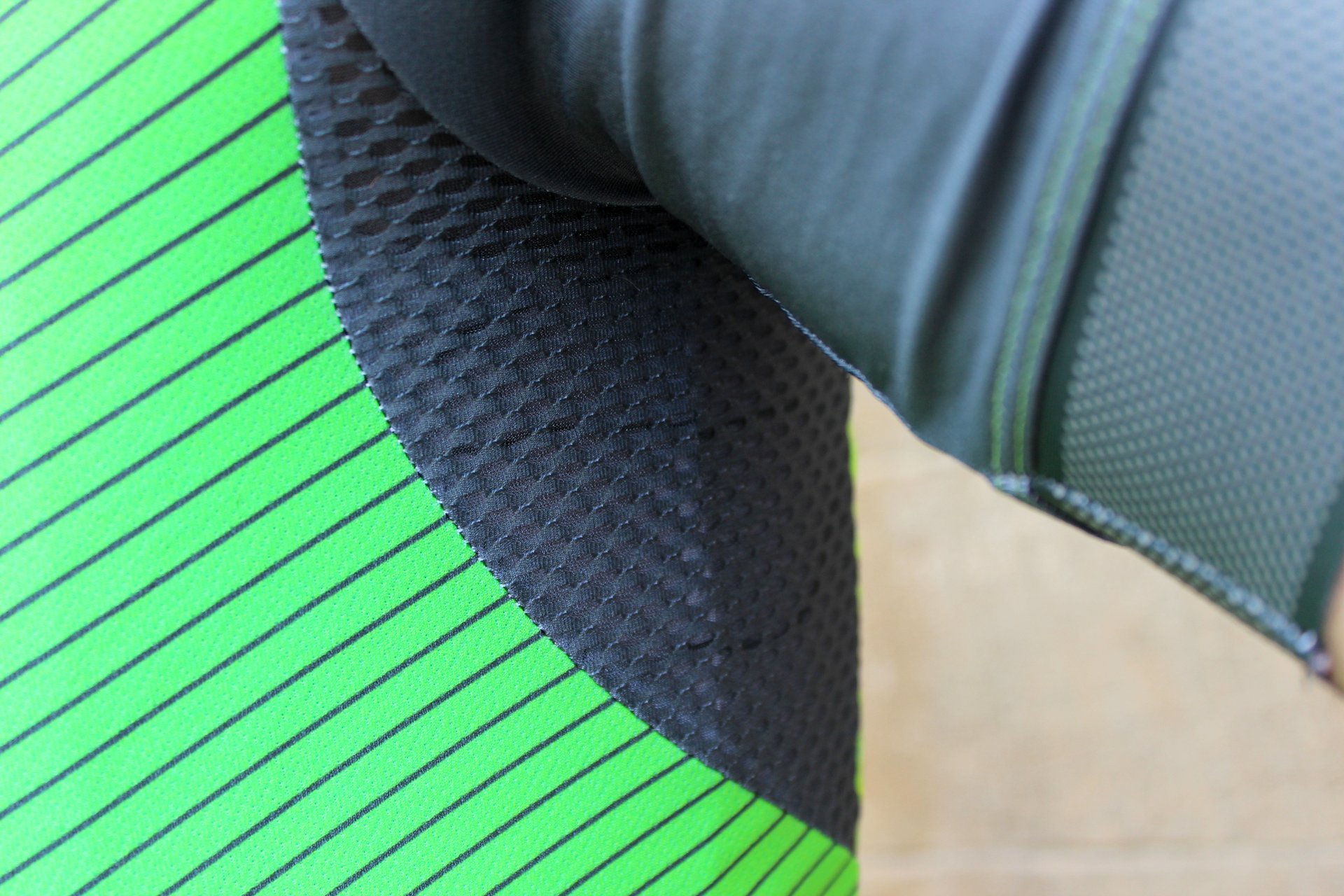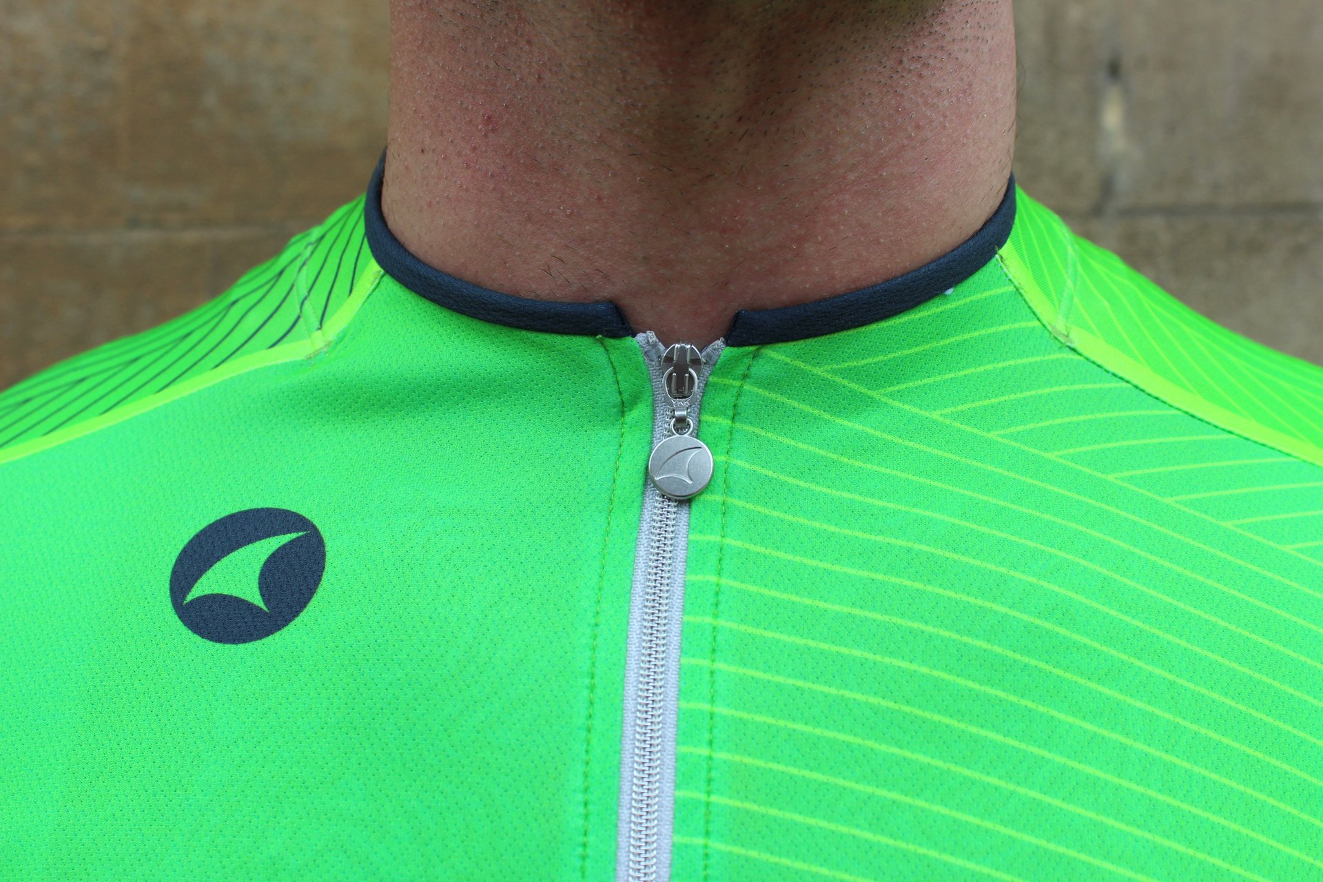 The jersey is primarily made from a 100 per cent polyester fabric, sourced from Italy and called ‘Superleggero’. That hints towards the low weight of the jersey and our medium sample weighs in at 136g.