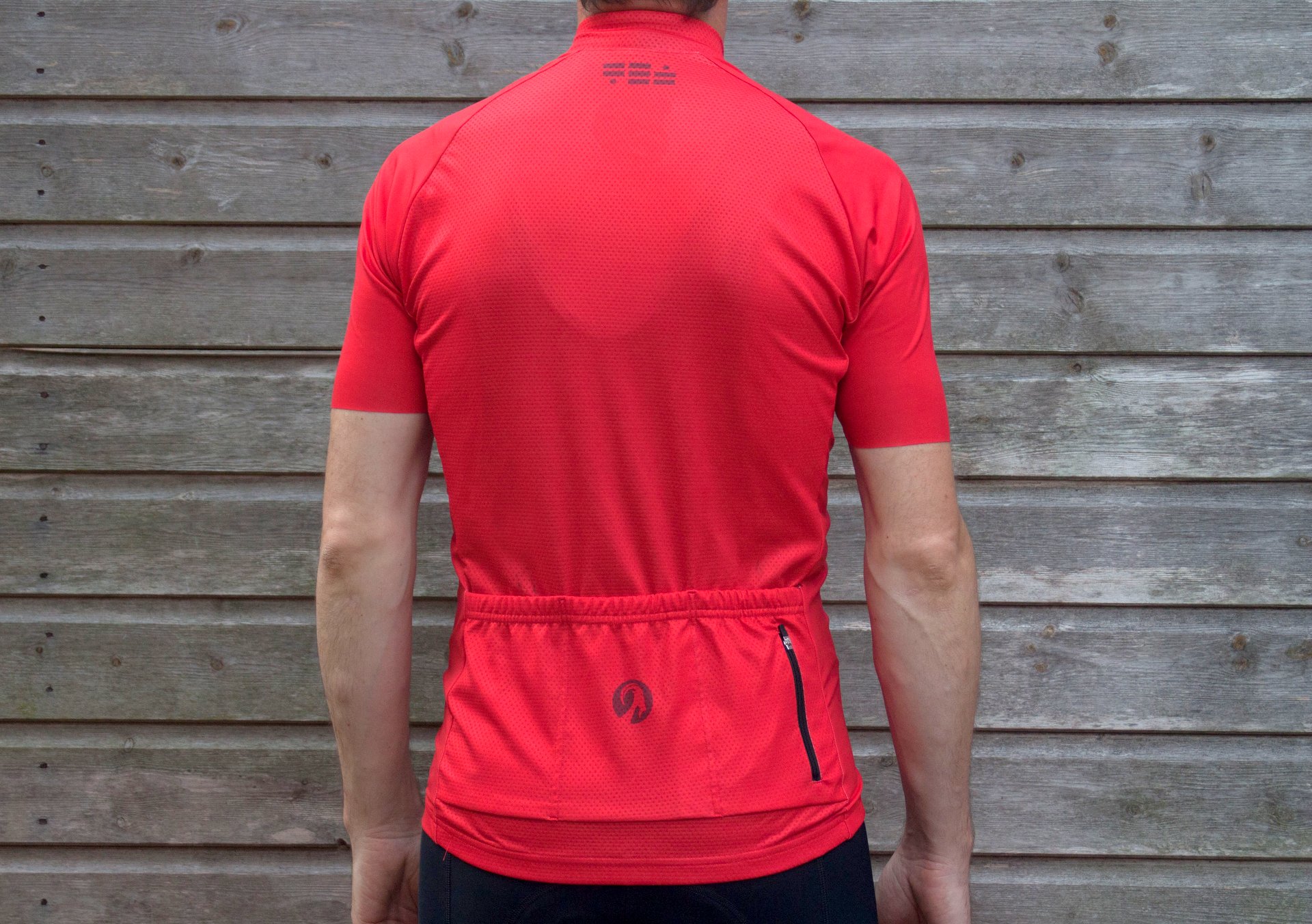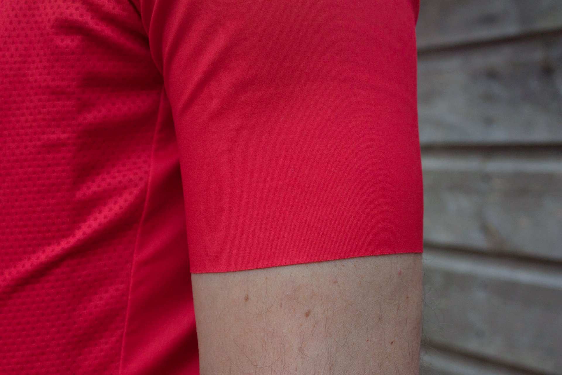 As soon as I put it on, the fit was good – it’s quite a lean cut and the mid-length, aero-style ‘raw’ cut sleeves hug and hold the arms perfectly. The main body of the jersey is also really well designed, with a good on-bike fit and little bunching of the zip when riding on the drops or in a tucked position.
