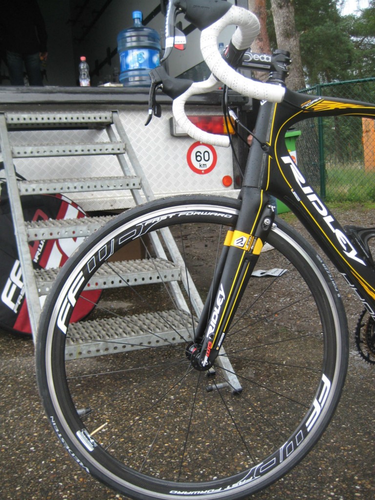 The Fast has the same geometry as the existing Noah – but how does it ride? Well, from our first ride, fast. Our test bike was kitted our with a Vacansoleil-DCM team-only spec – SRAM Red groupset, with Rotor cranks and Q-Rings, FFWD F4R-C wheels, Selle San Marco Regal saddle and a smattering of components from Ridley’s own-brand 4ZA Cirrus Pro range. The production Noah Fast will be decked out in Shimano Dura-Ace Di2.