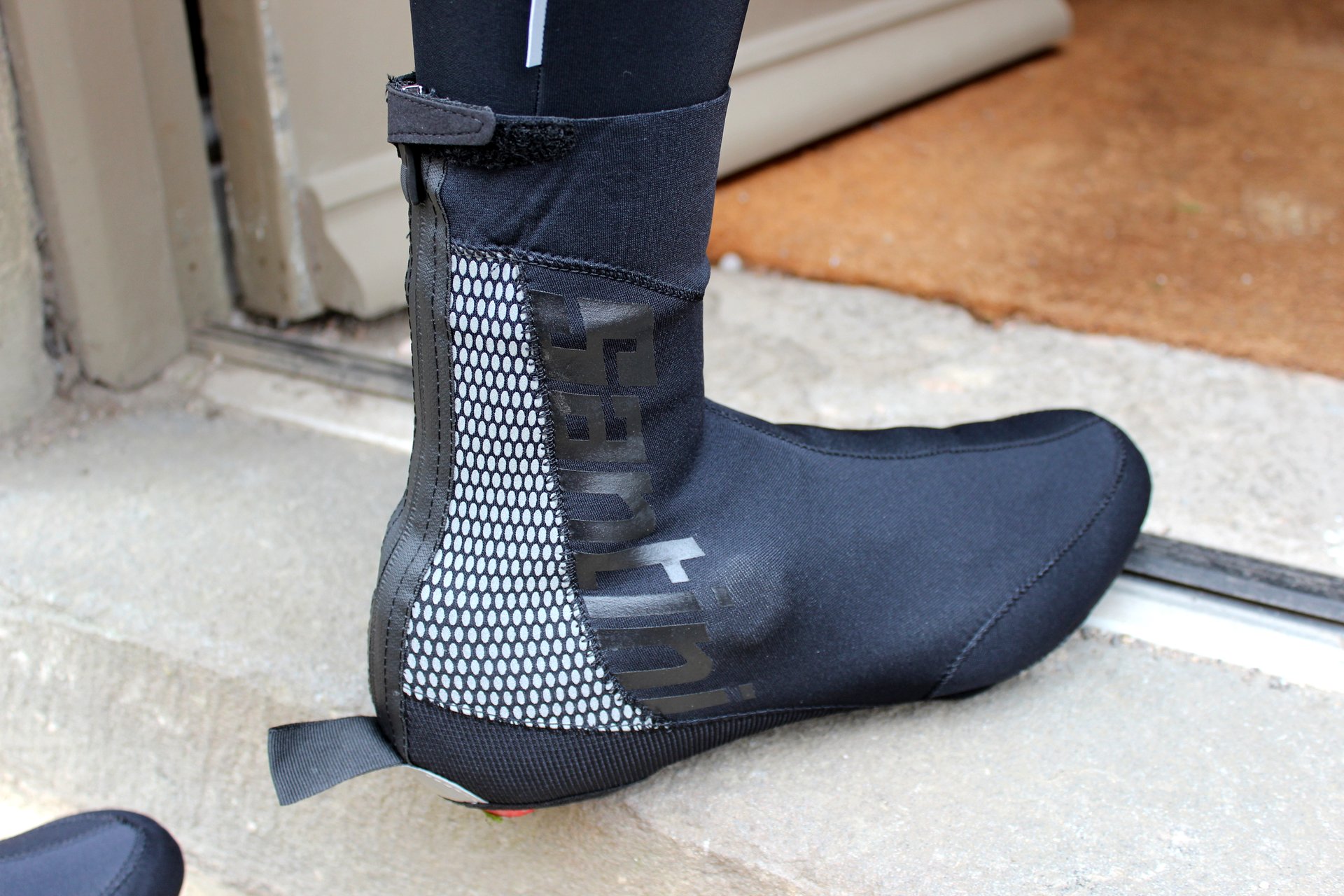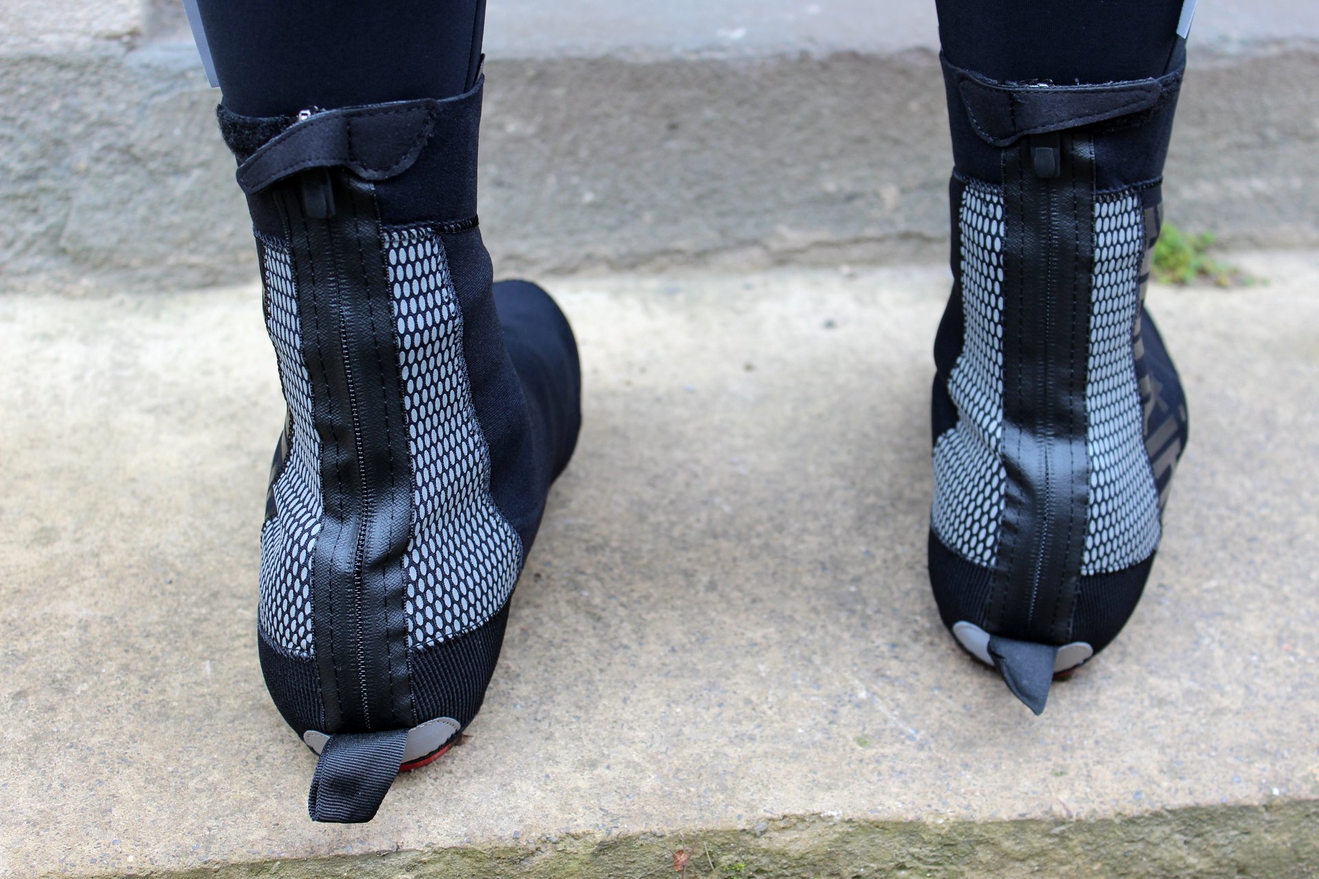 The use of neoprene certainly has its benefits – naturally thermal, it’s also flexible, and so lends itself to a tight yet comfortable and moulded fit around the shoe. Despite wearing UK size 11.5 Fizik shoes, a large was a perfect fit once on, albeit slightly tight to fit around the Look Keo cleats we used during our testing.