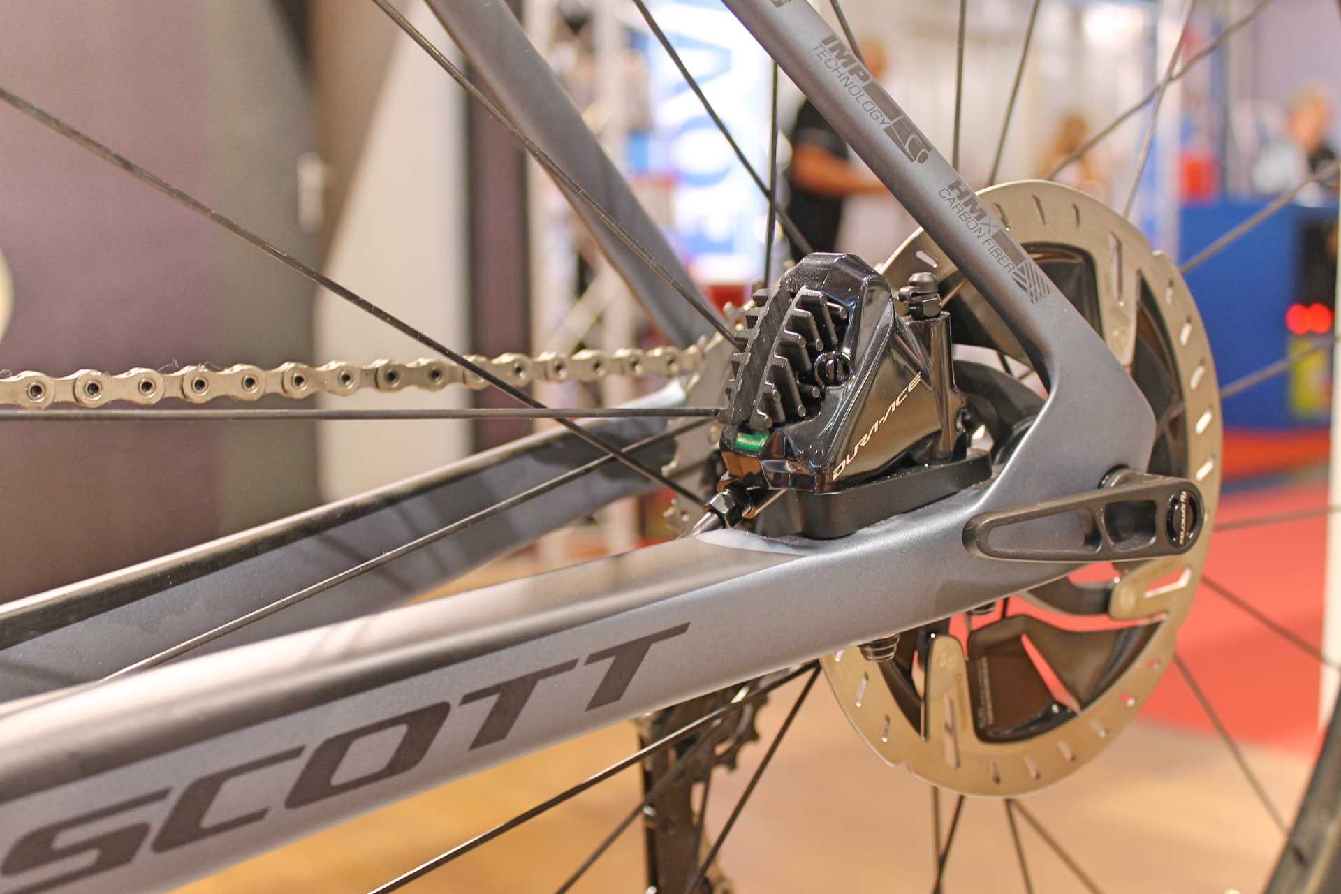As a result, you’ll now find extra material to balance out the asymmetrical braking forces, while Scott have also introduced a new narrower profile and a one-piece design around the front caliper to smooth airflow over the component.