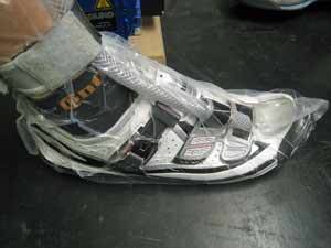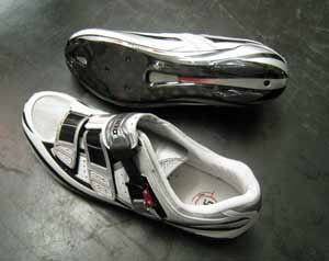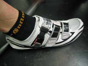 The process, which is a free service to anyone who purchases one of the several Shimano custom fit shoes now available, begins first with the removal of the insole. The shoe is then placed in an oven and heated for several minutes, until the thermoplastic material in the heel, insole and upper becomes soft and pliable.