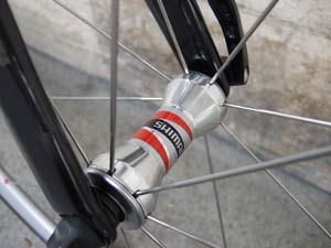 Hub design is also identical to that of the more expensive current Shimano wheels with an angular appearance and wide flange spacing for lateral stiffness.