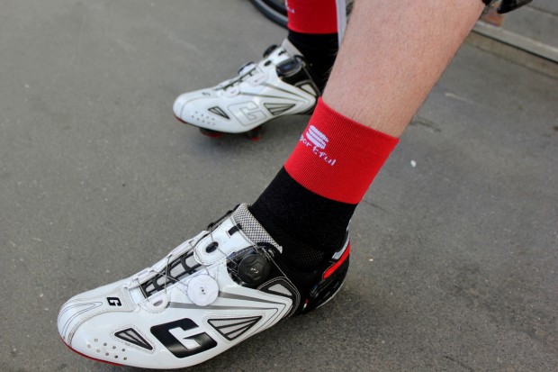 Finally, as far as this ensemble is concerned, these socks come from Sportful’s Grupetto range, which is essentially the same kit worn by the Sportful-sponsored Saxo-Tinkoff team, but without the sponsors’ logos.