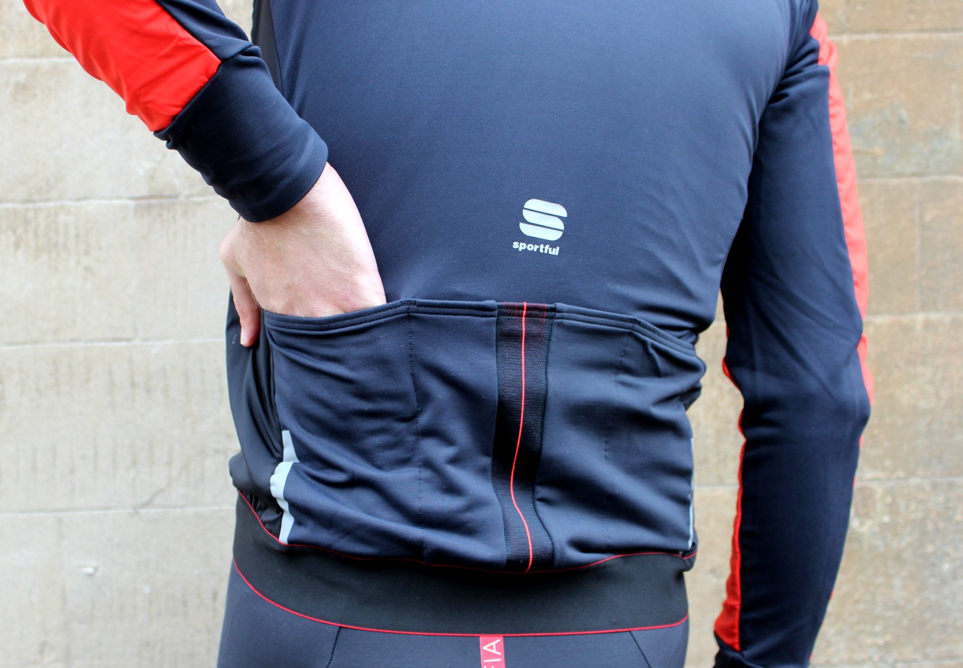 (Update 25/11/2016: Following this review, Sportful advised us the pockets should be evenly-sized and sent us a second jacket from stock. As a result, we can confirm the pockets each measure approximately 10cm across, making it significantly easier to access the right-hand pocket and solving our initial gripe.)