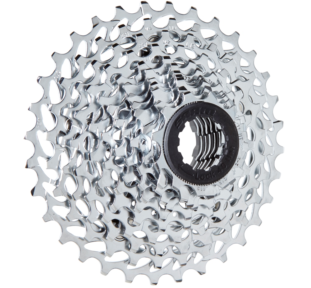 Three cassettes are marshalled in support SRAM’s claim for ‘unrivalled gearing’, with 11-26, 11-28 and 11-32 options. The heat-treated steel cogs include an aluminium spider, and are compatible with either the PC1170 chain, or the Rival 22-specific option – the PC1130, which uses a PowerLock joining link.