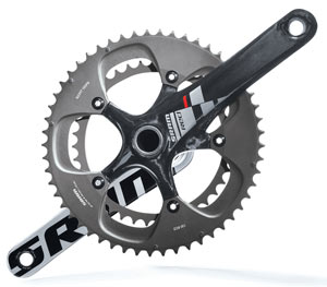![]() Meaty-looking crankset runs on ceramic bearings |