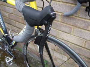 The functionality of derailleur mechs and brake calipers remains as was, the ‘braze-on’ front mech utilising SRAM’s unique dual mounting bolt hole to permit its use with both standard and compact chainset formats. The calipers still lack a fine centring adjustment, relyuing instead on a 12mm flat on the centre bolt intended to be gripped by a spanner.