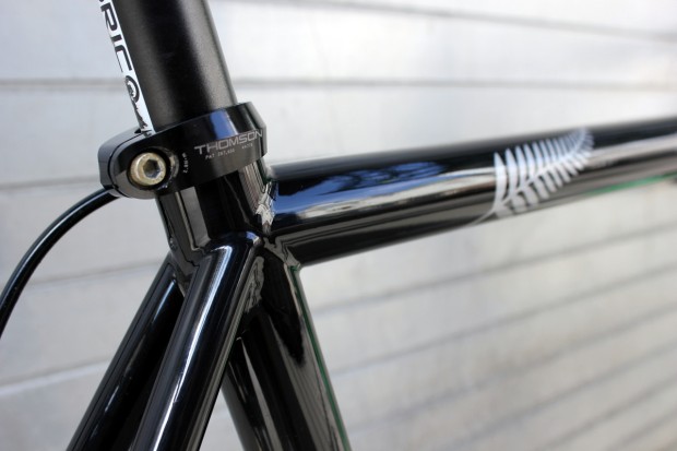 Each frame is painted in a two-colour combination, chosen by the customer, and our test machine is the personal steed of Stoemper’s UK agent, Scott Purchas – a Kent-based Kiwi, which explains the addition of a silver fern on the toptube. He’s built the frame up with a full Campagnolo Chorus groupset, Reynolds Attack wheels shod with Schwalbe Durano tyres, 3T finishing kit and a Fizik Aliante saddle.
