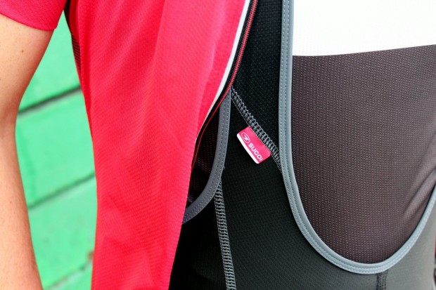 Details include a race radio pocket on the back of the shorts, and while I didn’t use it, there’s a small elastic loop on the top of the right-hand bib strap for headphones so you could conceivably drop a phone or iPod into the pocket. Otherwise, all the seams are flatlocked and so sat next to the skin with no fuss. Styling is limited to three logos, one on either leg, and on the left-hand hip, which has begun to fade after perhaps a dozen washes.