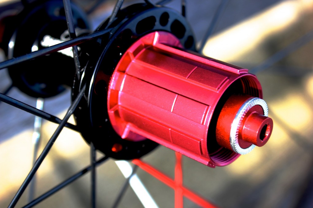 The hubs appear similar if not identical to those fitted to the Swiss Side Franc tested earlier this year, and should this be the case, we’ll have no fears for their performance. CNC-machined from 6061 aluminium, they’re easy on the eye, too. The pawls in the freehub emit the same pleasingly aggressive ‘click’, and operate without excessive lag, though we’ve experienced quicker engagement from competing designs, such as Chris King’s RingDrive and the star ratchet from DT Swiss. The freehub comes in Shimano/SRAM and Campagnolo flavours.