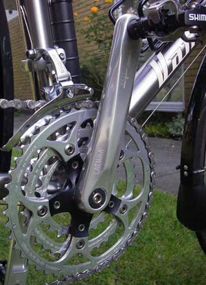 A triple setup to achieve lower overall gearing is what most buy TA for. 26/36/46 with a 13-29 cassette will give a reasonably high top gear as well as a set of useable low gears that should get even an unfit rider up most climbs (mid 90” top with most wheel tyre combinations and high 20” low). Just as importantly, the most often used gear ratios are also in the chainring/sprocket combinations where the chain line is as straight and therefore as smooth as possible, making the whole transmission also last longer as a result. The Carmina Triple is available either as a standard package with 26/36/46 or 28/38/48 chairings combos but with crank length to choice for £169.99 or as a custom package with chain ring choice of any combination to order for £199.99, which seems a bit odd as, even if you order the standard package, it all arrives separately anyway!