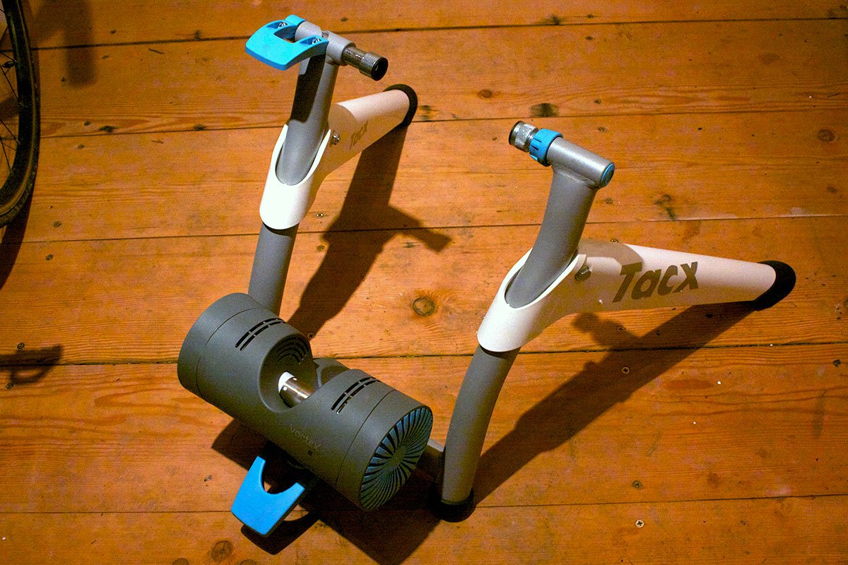 The Tacx Vortex Smart is one of three new interactive trainers from the Dutch firm for 2015. It has an electro-magnetic brake and a downloadable app to link the trainer with your smartphone, tablet or laptop/computer via Bluetooth or ANT+, bringing with it a host of features to spice up your indoor training.
