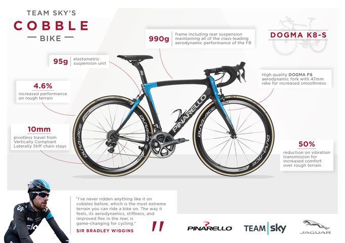 Pinarello Dogma K8-SCheck out Team Sky’s new bike for the cobbles developed by Pinarello and Jaguar