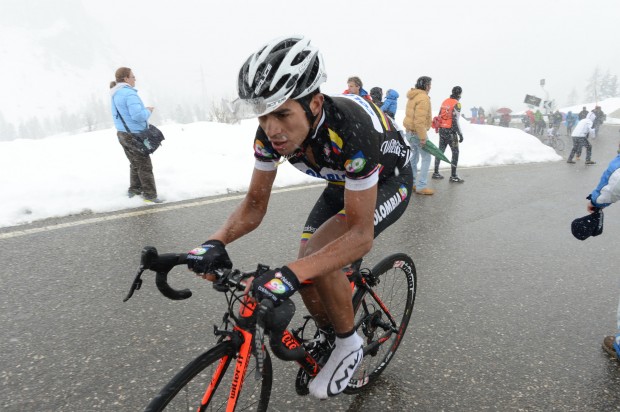 Three snow-caked Colombians cross a finish line drawn at 2,304 metres to finish in second, third and fourth positions. All are in a state of exhaustion. All are wearing shorts, sans knee warmers, exhibiting a collective national disdain for the worst climatic conditions Europe can offer.
