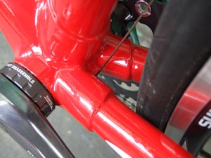 It rides exceptionally, however. In fact, I can’t think of a nicer bike I have ridden. There is something uncanny about its ability to float over road rough with utter aplomb while responding to pedal input with real urgency. In this it is very different to the Museeuw MF1, which is stiff to the point of track readiness. The Racer has more flex about it, but does not feel in any way mushy; outings in the Dragon Ride and L2P have proven both its all-day comfort and performance when pushed. It steers with rare precision and balance thanks to a tight front end and short wheel base, but is stable at all speeds.