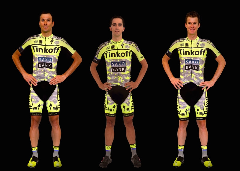 Tinkoff-Saxo have unveiled a special edition Tour de France team kit, which blends the team’s typical fluoro yellow with their camouflage training kit.