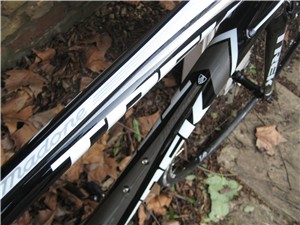 The 5 Series TCT Carbon frame, essentially the same as the Madone 6 tested last year, houses a BB90 bottom bracket, with internal cable routing.