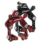 TRP’s range is spearheaded by the all-new R960. A weight of just 120g per caliper (Shimano DuraAce circa. 157g) is achieved by forged and CNC machined 6061 aluminium arms using a dual pivot design. Every last ounce of excess weight is machined away; even the brake shoes (fitted with SwissStop pads) have been machined to within an inch of their life, and further weight savings are granted with titanium hardware. Available in anodised red or black.
