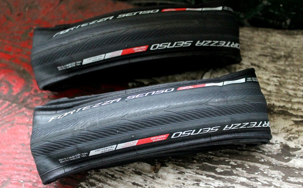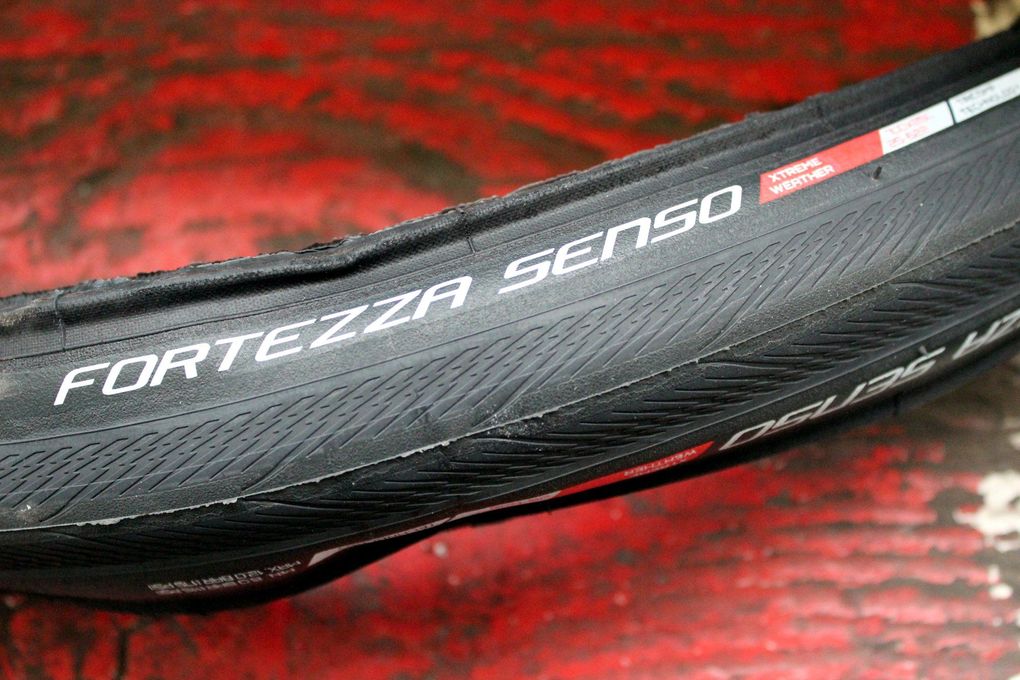 This review came about a conversation with a well-known British pro at a race at the end of last season. He’d switched his sponsor’s tyres and shod his wheels with a set of these Vredestein Fortezza Senso Xtreme Weather clinchers. His reasoning was the best way to be in with a shout of winning the race – which didn’t have the luxury of neutral service – was to still be in it at the end. A good point.