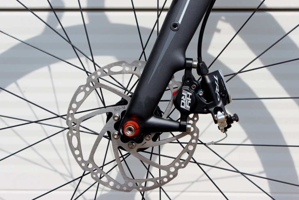 “There is a misconception that disc brakes are more powerful,” he says. “That really isn’t the benefit, it’s the modulation of the power. It you ride in the Cotswolds, where there are 25 per descents, covered in moss, often wet – and most people will have encountered that sort of riding in the UK – then the reality is that with hydraulic disc brakes you can brake from the hoods with one finger. That means your weight isn’t moved all the way onto the front of the bike, you’re in control, you’re more relaxed, and the performance is so much better. Once you’ve done it, and then you go back to caliper brakes, it’s like night and day.”