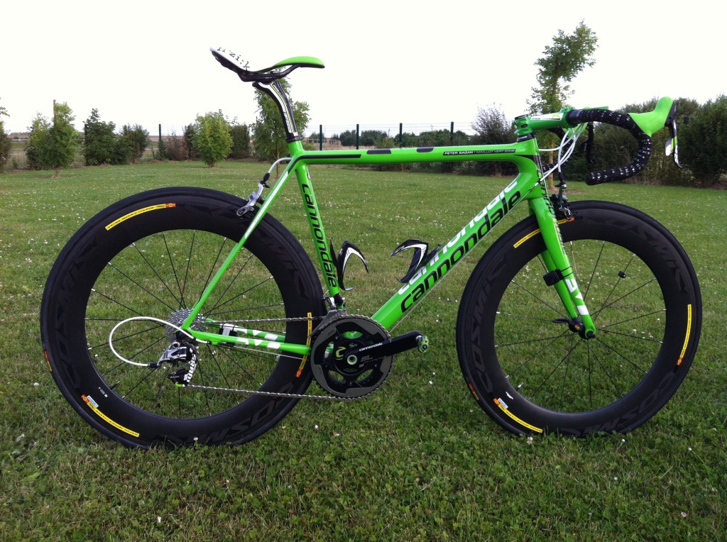 Meanwhile, Peter Sagan has been easy to spot at the Tour de France thanks to his green jersey and Tourminator bike – and the Slovak sprint sensation was unmissable in Paris after Cannondale presented the 22-year-old with a green SuperSix Evo for the final stage.