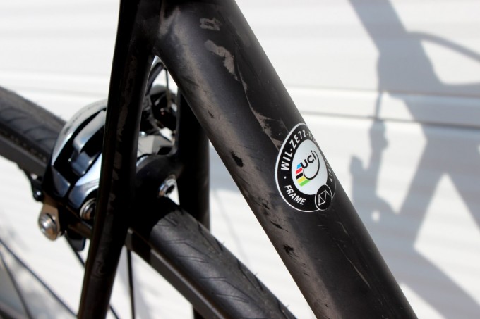 The model year 2015 Zero 7 is noticeably slimmer than its predecessor – with the tube profiles, which have a very subtle Kammtail profile, reduced in size by a claimed 19 per cent. That’s been done without sacrificing stiffness, according to Izzard, and the reduced footprint of the new Zero 7 is said to have improved its aerodynamic efficiency by eight per cent, thanks also to an integrated fork design and the introduction of internal cable routing. The frame, by the way, is compatible with mechanical and electronic groupsets, with a removable plate on the downtube – designed also to ‘provide the perfect cable angle’ and minimise friction – to switch between the two.