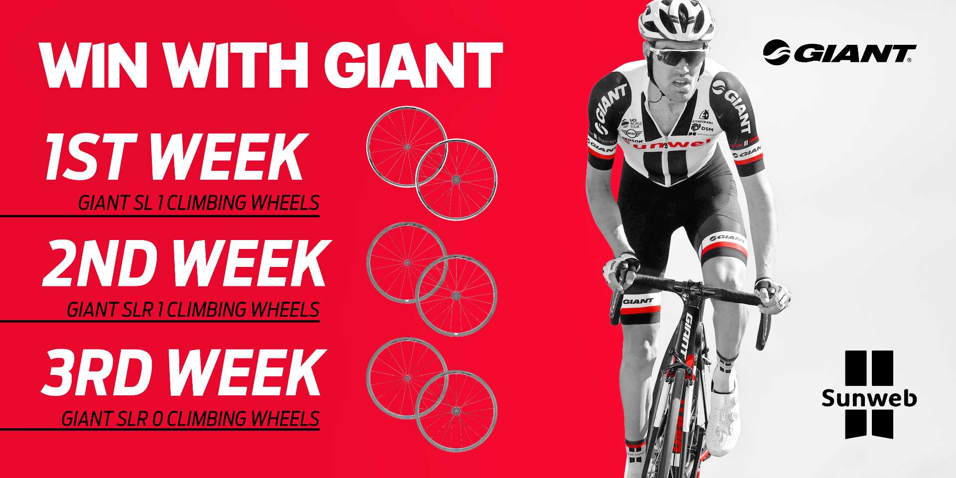 That means three chances to win yourself a set of Giant’s climbing wheels, with the SL 1, SLR 1 and SLR 0 wheelsets up for grabs through the Tour.