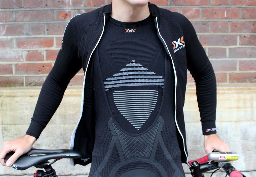 First up, X-Impact. This, basically, is compression. The claim is that the reduction in muscle vibration from the compressive clothing stabilises the muscles and helps to stave off fatigue for longer. This one comes with ‘mid’ compression, which is a skin tight fit without that crushing feeling you get with full-on compression gear. Whether or not you buy into the performance-enhancing benefits, it’s impossible to deny that the fit is fantastic, exceptionally comfortable, and the lack of movement that comes with such a snug fit is particularly important for the second major feature of the clothing.