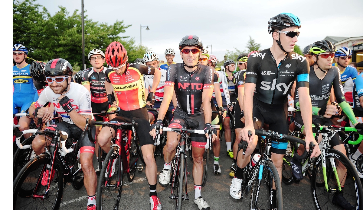 Downing, centre, raced for NFTO Pro Cycling in 2014 and found his training was increasingly time-constrained as he entered the twilight years of his career (Pic: Simon Wilkinson/SWpix.com)