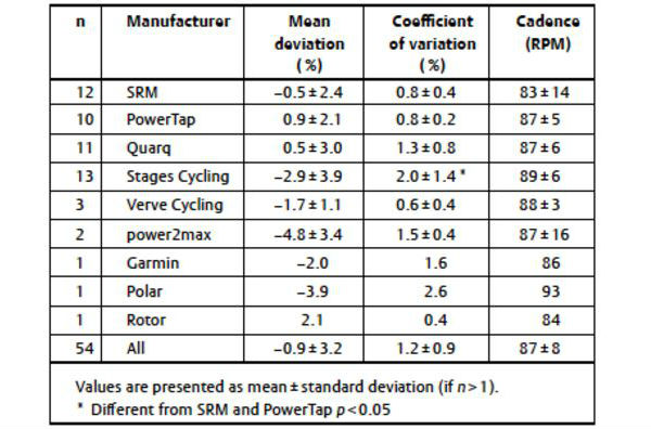 The researchers cleverly designed their testing so they were able to calculate the true average power that a rider was producing and then compare that true power value with the value recorded on various power meters.