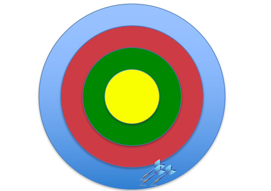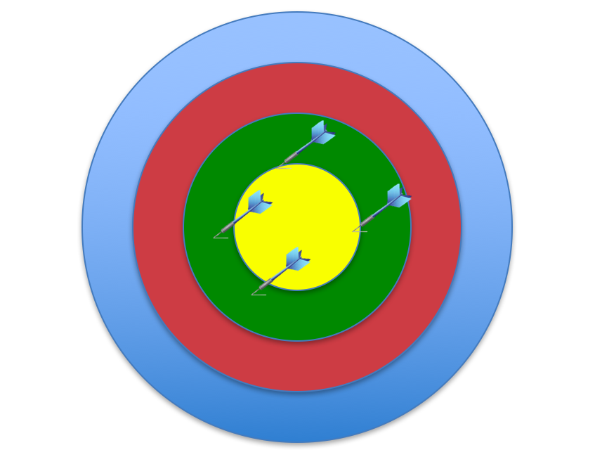 All of the darts are close to one another and in the bullseye. This is the ideal world when it comes to power meters as it means the data can be compared across multiple power meters on multiple days.