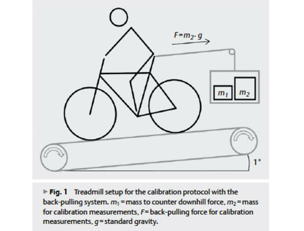 To do this, riders were placed on a treadmill set to a one per cent incline – but they were facing downhill (see figure one). A cord was attached to the seatpost, which in turn was linked to a weight to hold the rider in the same position on the treadmill.