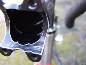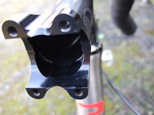 Note that the visible, external surface of the stem is left untouched, although a miniscule gap would be visible ‘under the microscope’ around the circumference of the bar. Combined with the roughened mating surface, the result is considerably enhanced clamping along with what should be greatly enhanced handlebar fatigue life and all for nothing more than five minutes’ work. The same process can be applied as necessary to other examples of such transitions including those described above.