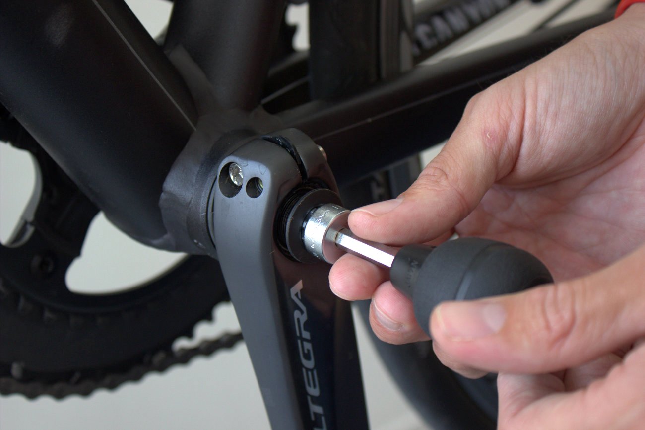 When you've removed the existing non-driveside crank arm, slide the Stages crank onto the axle, being careful to make sure that it's at exactly 180 degrees to the opposite arm