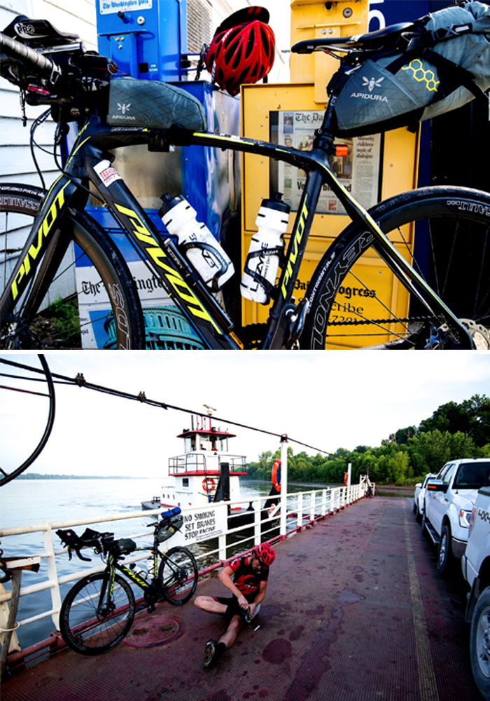 Faced with over two weeks of riding an average of 200 miles a day, the temptation to quit must be strong, but armed with a mentality more robust than his wrecked skin, Pickup takes advantage of the truck stop’s shower facilities, eats a hearty breakfast, and sets about softening his steed’s torturous perch with arm and knee warmers.